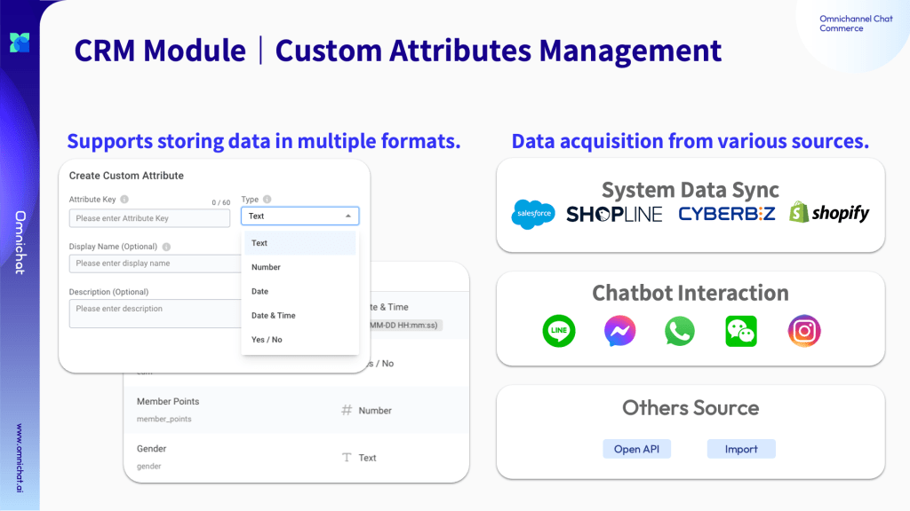 Omnichat‘s custom attributes address the challenges faced by brands when managing CRM systems, enabling them to excel in member communication and effectively engage potential customers at the opportune moments. Businesses can streamline their CRM operations and ensure timely and targeted interactions, ultimately enhancing the overall marketing efforts.