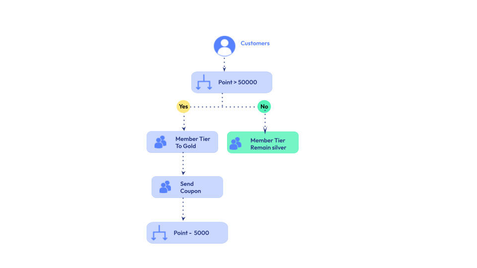 One of the most powerful features of Omnichat’s Custom Member Cards is the ability to set up automated workflows. These workflows are triggered by a member’s actions or accumulated points. Here are some examples of what you can automate: