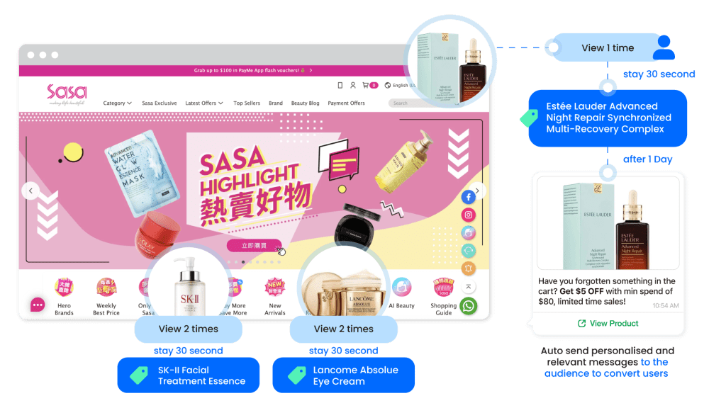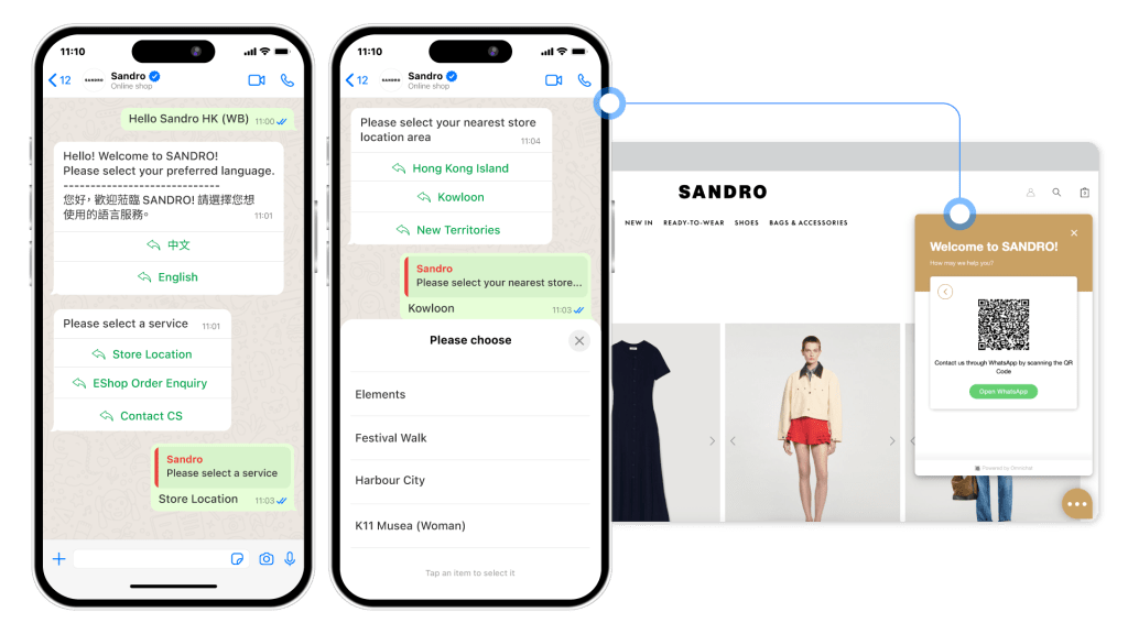 Many shoppers browse but leave without a trace. With Omnichat, you can capture these visitors by inviting them to connect via WhatsApp or Messenger through a simple QR scan. Once connected, Omnichat automatically builds a profile based on shopping behavior, allowing you to share relevant updates — such as early access to products they’ve shown interest in.
