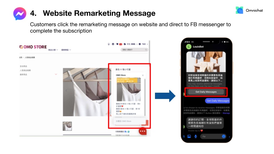 Facebook has launched a new broadcast feature ‘Recurring Notifications’, which is currently exclusively supported by a few solution providers such as Omnichat. Detailed application and set-up procedures can be found in this article.