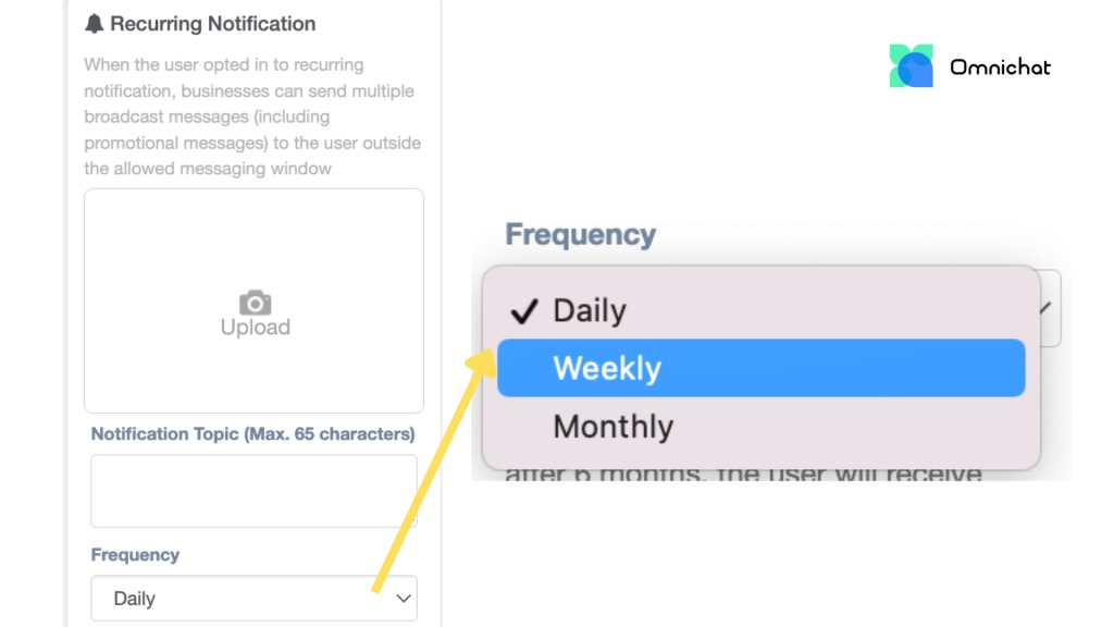 Thank you for your interest in Facebook’s Recurring Notifications feature. Meta has recently announced a significant update aimed at delivering a more integrated and efficient business communication experience. The existing “Recurring Messages” feature will be officially discontinued on January 7, 2026, and will be fully replaced by the new “Marketing Messages” feature. As a Meta–certified technology partner, Omnichat will be among the first platforms to support the new “Marketing Messages” feature. We invite you to contact an Omnichat consultant to learn more about the latest capabilities and how to get started.