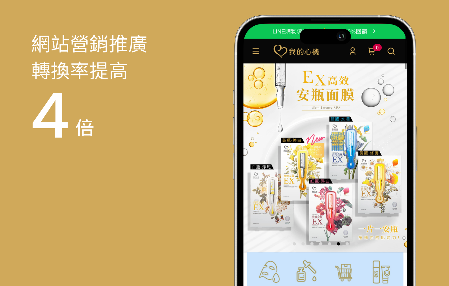 《我的心機》是家喻戶曉的面膜品牌,除了在實體門市、各大線上平台長期熱賣,也透過官網更直接服務顧客。 由於需要整合多渠道客服,以及提升網站轉換率,《我的心機》開始使用 Omnichat。目前,《我的心機》除了享受各渠道訊息整合的便利外,透過 Omnichat 行銷助攻的網站轉換率比以往高 4 倍,購物車未結帳再行銷轉換率更是達到 12%。 《我的心機》在台灣使用 LINE 行銷