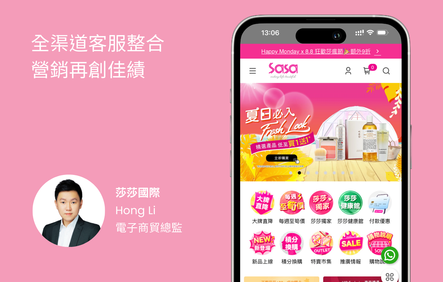 2021 年 7 月 28 日 Omnichat 很高興邀請到,香港化妝品零售龍頭「莎莎國際」的電子商貿副總監 Hong Li ,一起討論如何鞏固在地銷售,疫情中的轉型與改變,以及對話整合系統如何協助顧客關係管理,和後疫情時代的社群策略分享。 OMO 已是一個零售新趨勢,Online 和 Offline 不一定是競爭對手,打通線上線下,讓零售業創造更多可能性。 於疫情初期,快速轉型 Sasa 在香港建