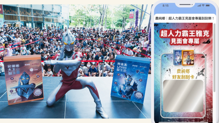 農純鄉的營銷操作一直以來都在同業中領先群雄:從昆凌連結到產後照護食品,到知名藝人 Janet 謝怡芬合作滴雞精的代言,將品牌亮點精準觸達目標受眾。在今年,團隊又有重大的突破:以日本知名 IP 「超人力霸王」與旗下兩款益生菌聯名並舉辦 3 場見面會,目標瞄準「超人力霸王」充滿力量的正義形象,連結益生菌主打「健康」、「長高」、「強壯」的產品特色,打造產品健康活力的形象,並期待透過聯名拓展更多新客。