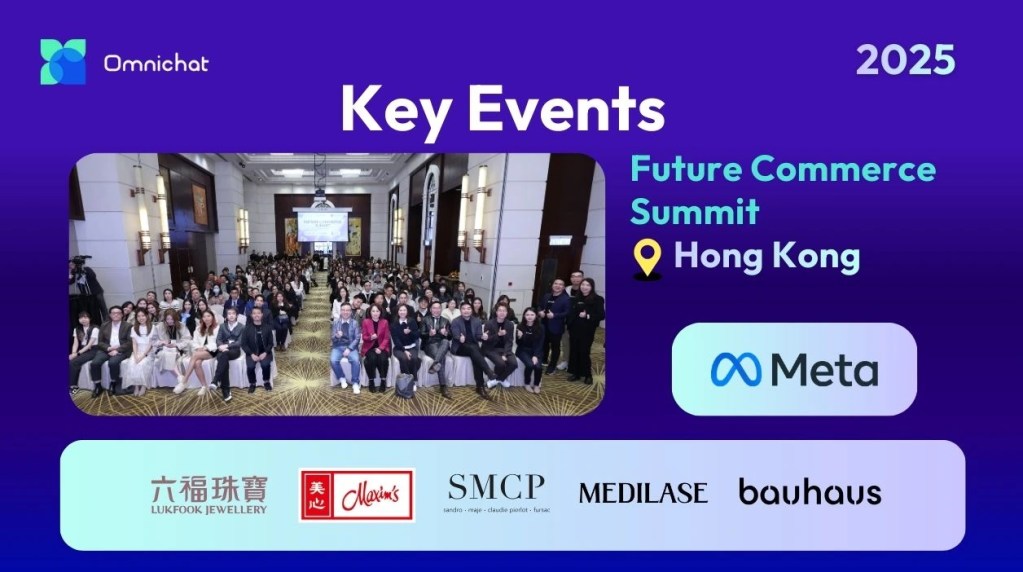 - 香港: 主辦 Future Commerce Summit,邀請 Meta、WhatsApp、六福珠寶、美心集團 (Maxim’s) 及 SMCP 分享 Social CRM 與 AI 的實戰經驗。