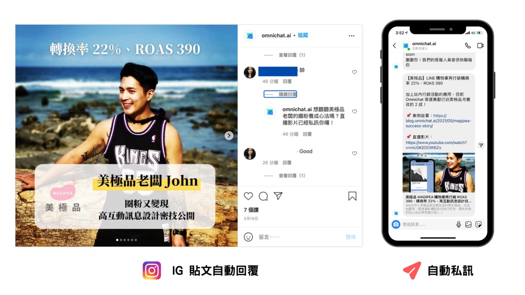 In other words, with the Messenger API solutions provider like Omnichat, every IG business account can set up Chatbot and auto-reply.
