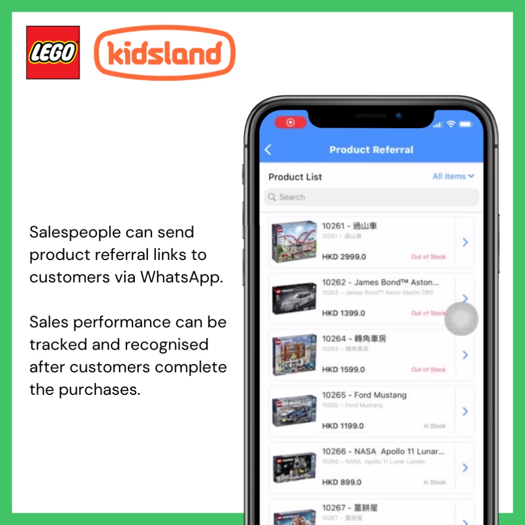 Through Omnichat, salespeople of Kidsland can easily recommend products to customers with a few clicks. Performance tracking report is available for management and revenue tracking across online and offline channels.