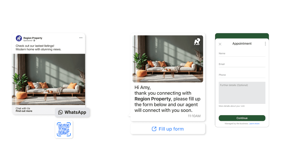 Picture this: your development company is ready to unveil an exciting new residential project! Instead of sending potential buyers to a sluggish website form, imagine utilizing a lively Facebook or Instagram ad with a clear and inviting call-to-action: “Message Us on WhatsApp!”