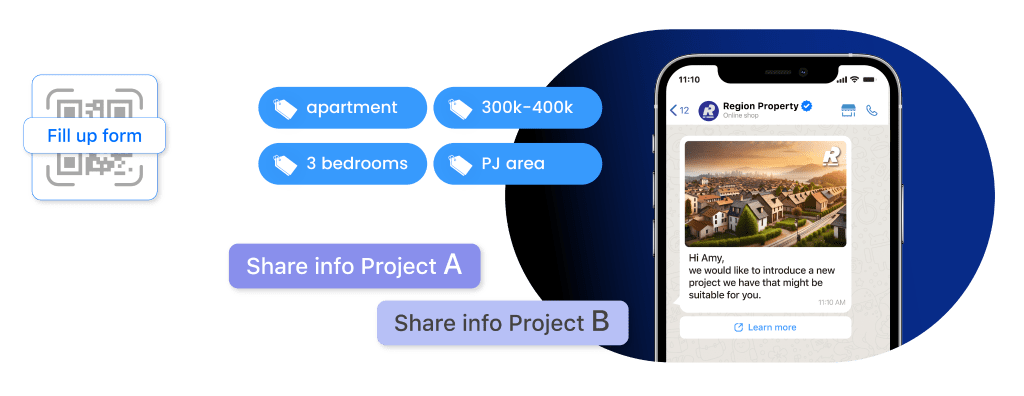 Every WhatsApp interaction generates valuable customer data. With Omnichat’s tag-based segmentation, you can group leads based on preferences, budget, or project interest.