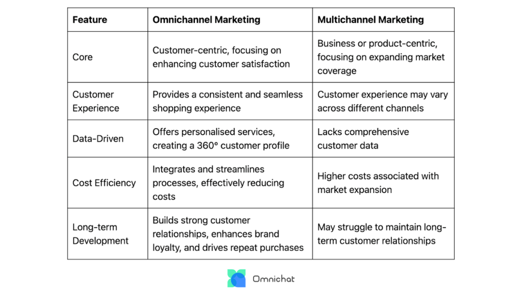 This comparison highlights how omnichannel marketing enhances customer satisfaction and strengthens brand loyalty, ultimately driving sustainable business growth.