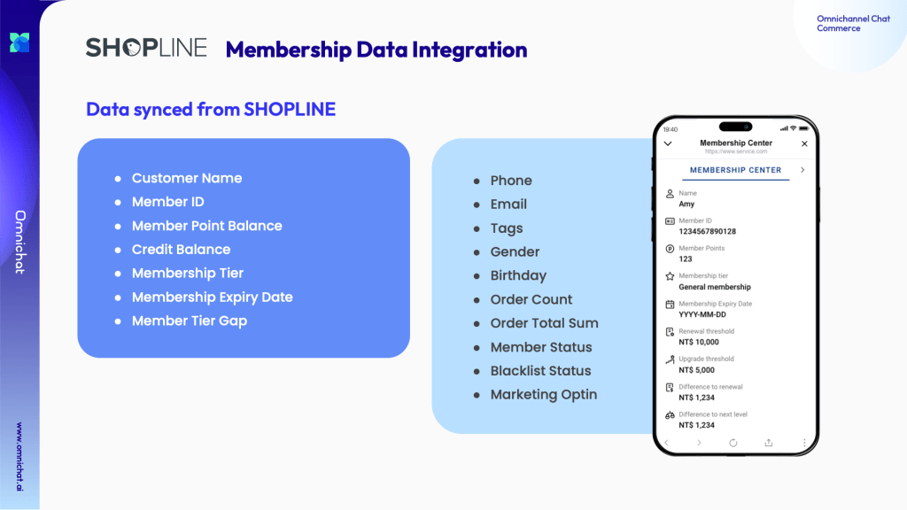 Data can be synced from SHOPLINE to Omnichat: