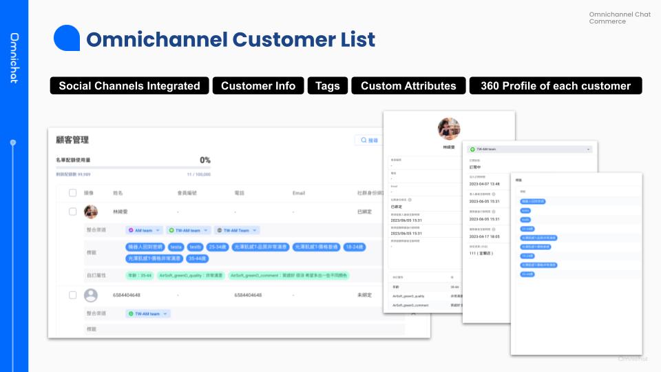 In conversational commerce, brands often use ‘tags’ to record customer behaviour and preferences. As the number of tags increases, managing and applying them can become challenging. With Omnichat’s ‘custom attributes‘ field, brands can conveniently record custom data such as customer birthdays, membership levels, average spending, total spending, and more.