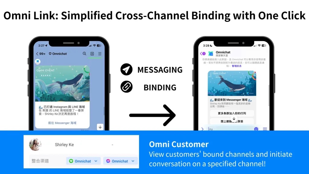 Omnichat’s ‘Omni Link‘ feature allows brands to connect customers to various social platforms and integrate the data and information from these platforms with just a click.
