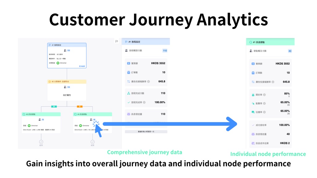 By examining individual nodes, you can dig deeper into specific performance metrics, paving the way for continual adjustments and optimisation of the customer journey.