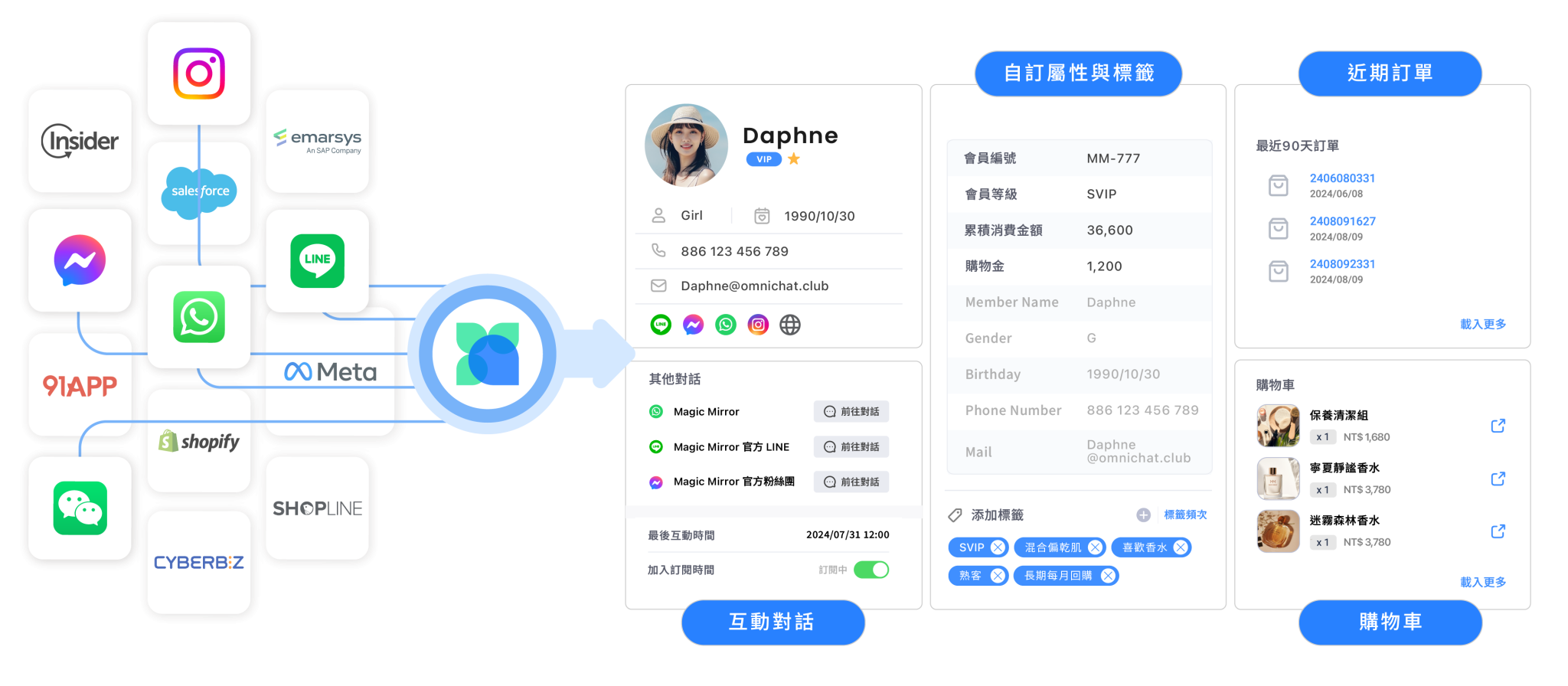 - 整合官網瀏覽、社群互動、客服對話與門市歷程,建立 One ID。