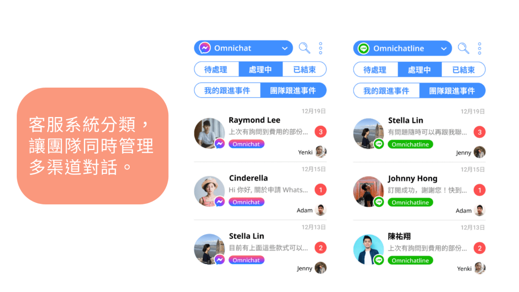 一般零售電商會有多種客服渠道,包括 FB Messenger、LINE、官網甚至是 IG,要回覆客人問題,往往要同時開啟多個 APP,隨時待命。