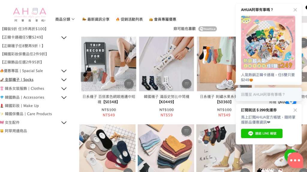 《阿華有事嗎》最早期批貨韓國流行襪子到 Instagram 和蝦皮販售。半年後,透過精準的客群定位,遂開啟官網通路,主打多款式正韓襪子、衣服和飾品,在競品中脫引而出。