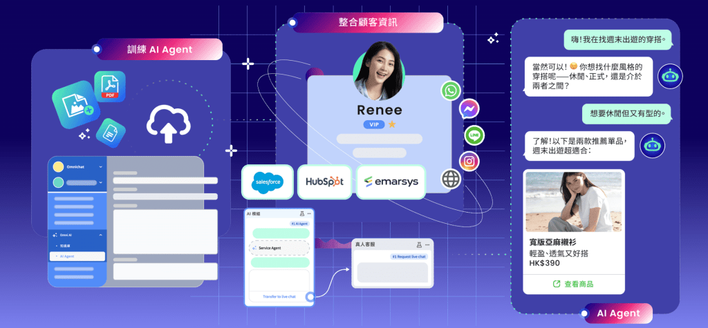 - 串連社群與內容:在 LINE、Messenger、Instagram 等社群平台上,導入智能客服機制,讓內容與對話自然接軌,提高品牌互動力。