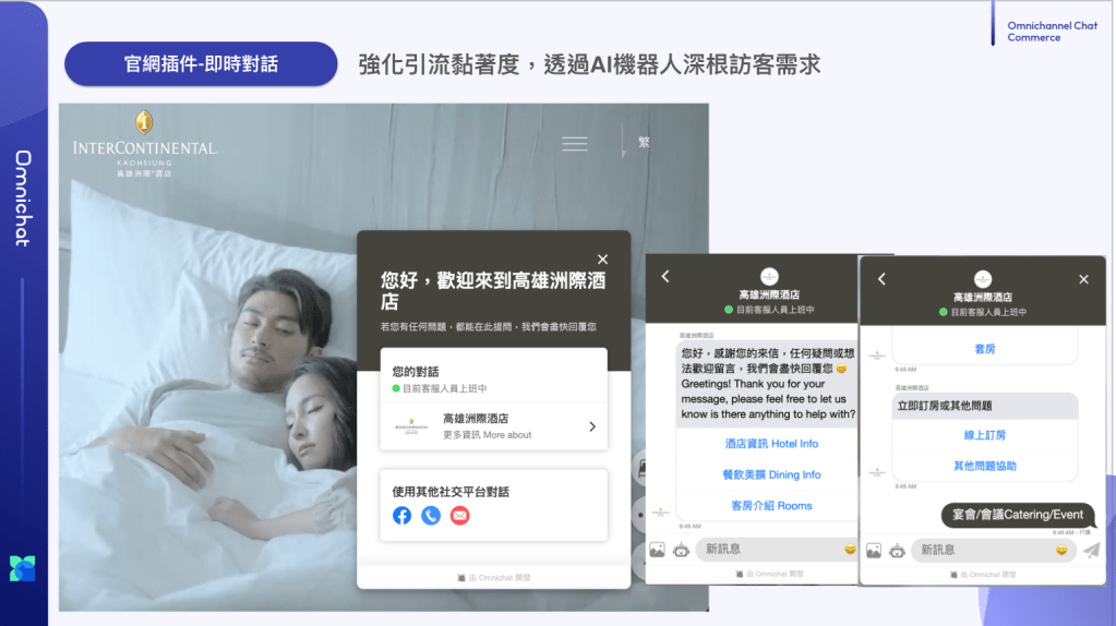 範例:旅宿品牌透過 Messenger Bot 提供空房查詢、附近景點推薦與會員優惠推播,不僅提升服務效率,也帶動回購。