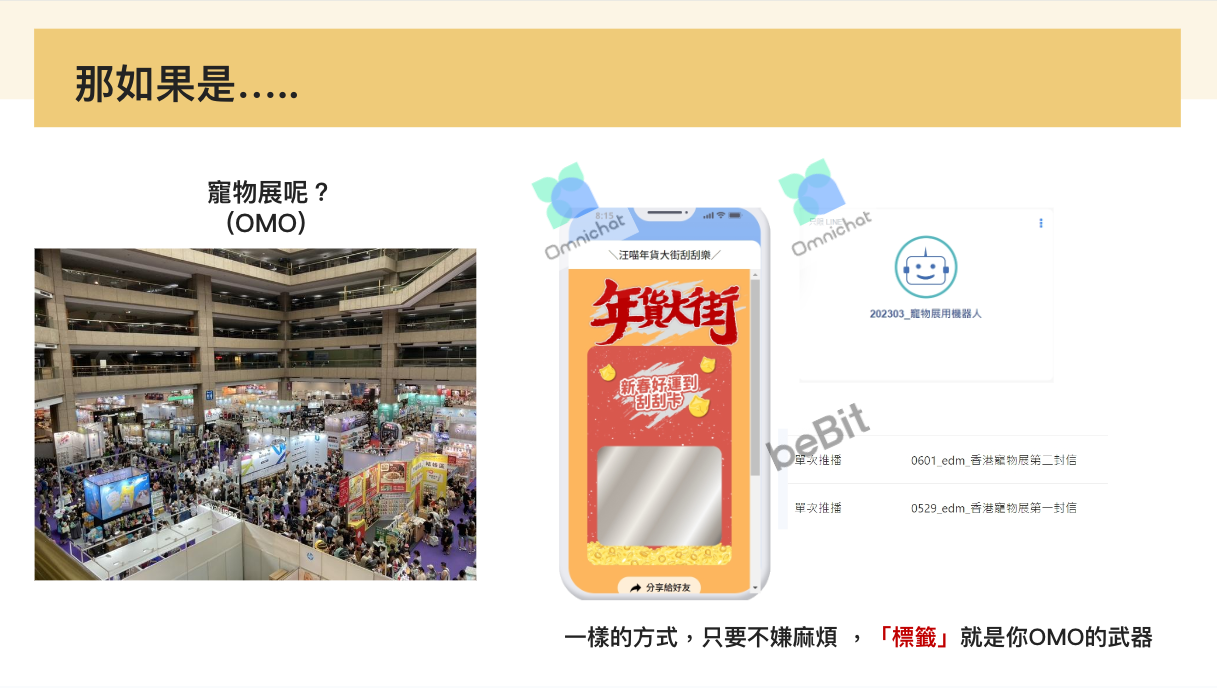 在 CDP 蒐集到的數據,可以讓 Omnichat 的 LINE 分眾推播更精準;而透過 Omnichat 和消費者在 LINE、Messenger、IG 直接互動蒐集到的標籤、互動紀錄,也能讓 CDP 做出更精準的分析與顧客分群。