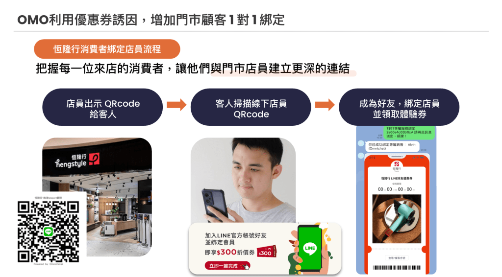 更重要的是,透過單一帳號的整合,成功打造出一個兼容多品牌、多銷售通路、多行銷管道的 LINE 官方帳號,在各品牌仍能保有個性化的溝通語氣與內容之際,仍統合進「One hengstyle」會員體系。換句話說,不論消費者來自直營門市、外部通路,或線上電商購買,最終都會成為 One hengstyle 會員,持續接受個人化服務。