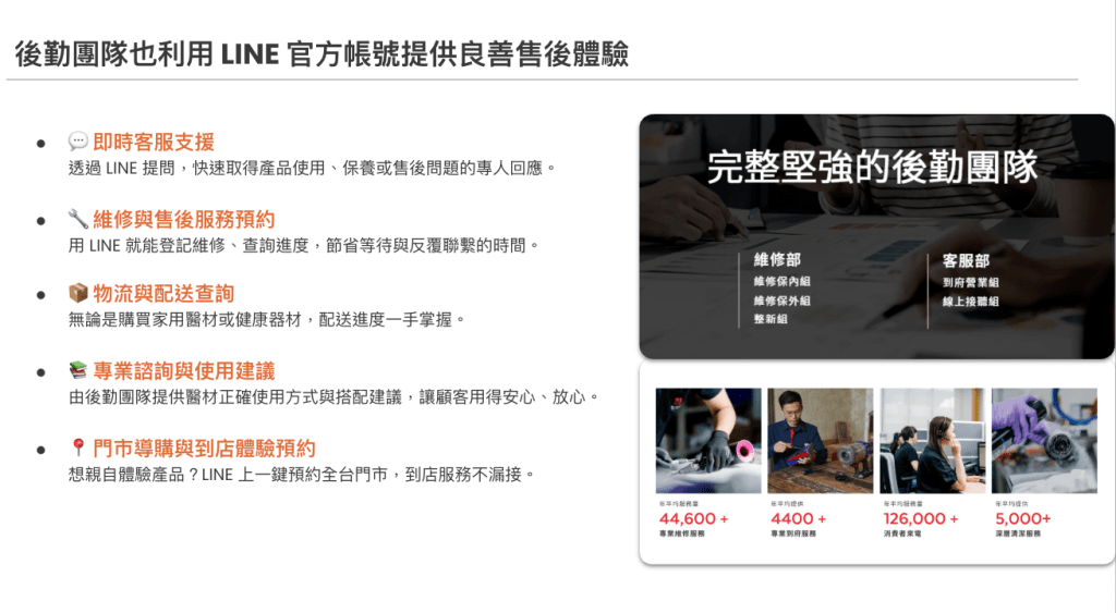 消費者不需下載額外App,僅需使用LINE即可獲得完整售後與會員服務。