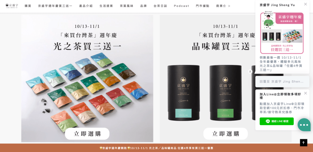 線上體驗一直是京盛宇最重視的,讓客人真正享受喝茶這件事是品牌初衷。因此京盛宇也採用更多工具,提高顧客互動率。