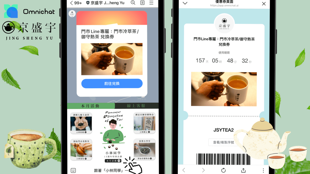 京盛宇是 Omnichat 客戶中,數一數二的跨界行銷達人。過去兩年來,曾經和 Uniqlo、去味大師、八三夭樂團等知名大品牌合作,透過創意且精緻的聯名活動,讓更多客群了解京盛宇親和的茶品體驗。