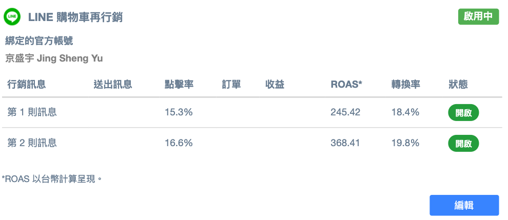 兩則訊息都達成 ROAS 245 以上的成效,成功帶回許多寶貴訂單。