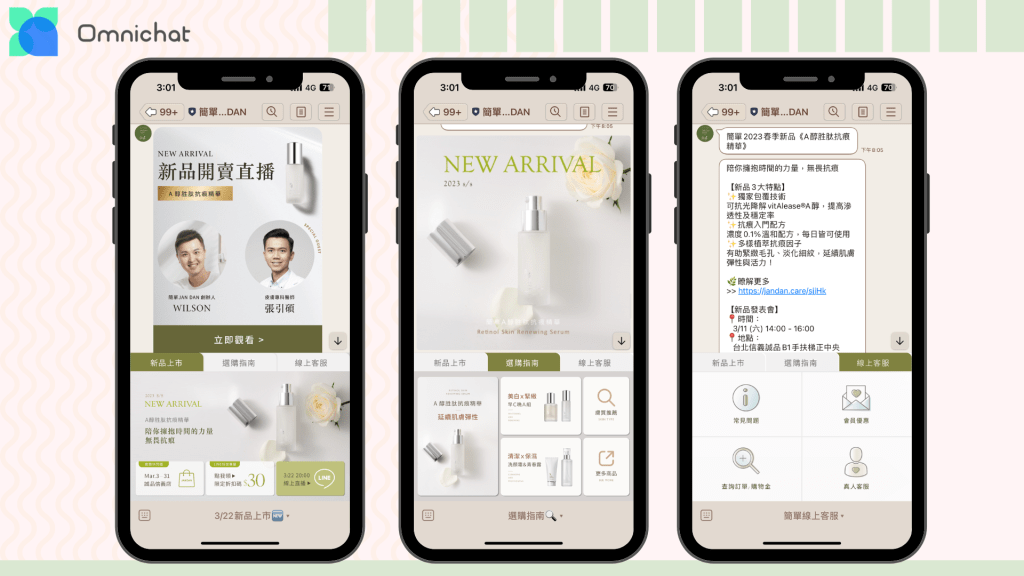 LINE 圖文選單不應只是精美的靜態圖片,它可以更進一步是品牌與顧客對話的起點,甚至是在流量破碎化的現在,在社群中扮演小官網的角色。透過 Omnichat 的多樣突破性的功能,品牌更能賦予 LINE 官方帳號更高的生命力與商業價值,將每個流量轉化為珍貴的顧客資產。