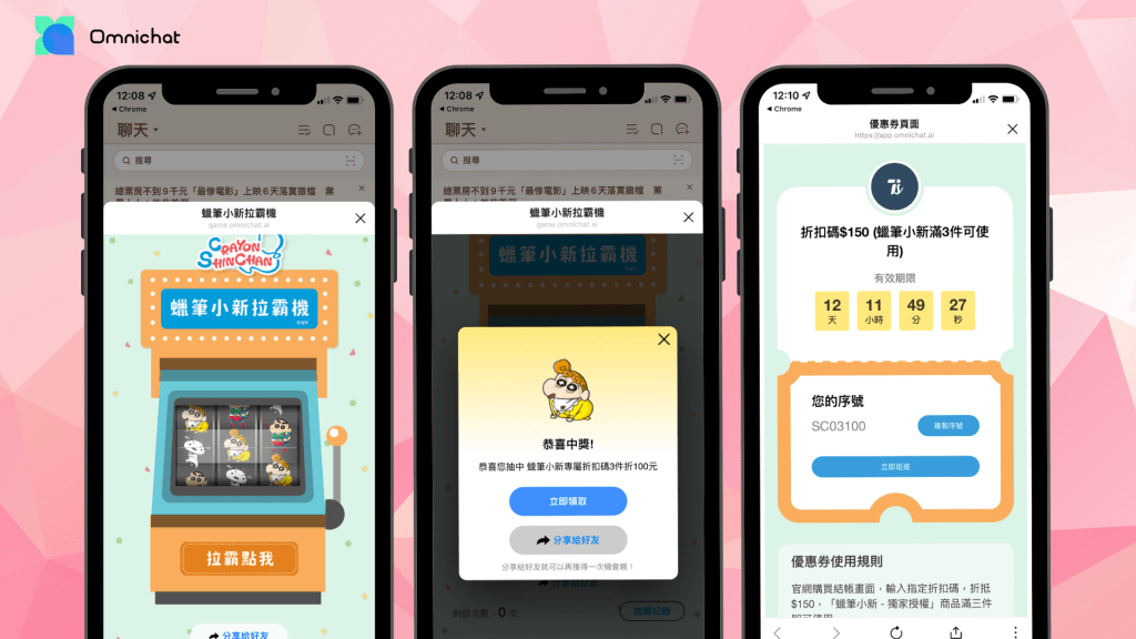 - 多渠道導流:在 Omnichat 後台取得遊戲模組連結後,可以放置在 FB、IG、網站、EDM⋯⋯等多處將顧客導入 LINE 成為好友並玩遊戲