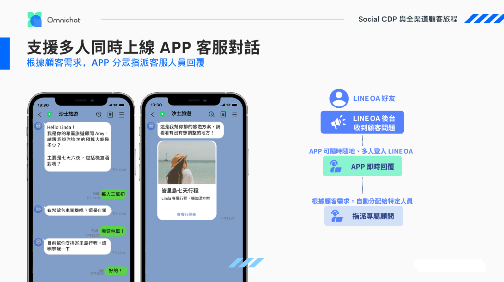 一站式讓旅客透過 LINE 官方帳號獲得有關預訂變更、行程問題或景點推薦等的協助。