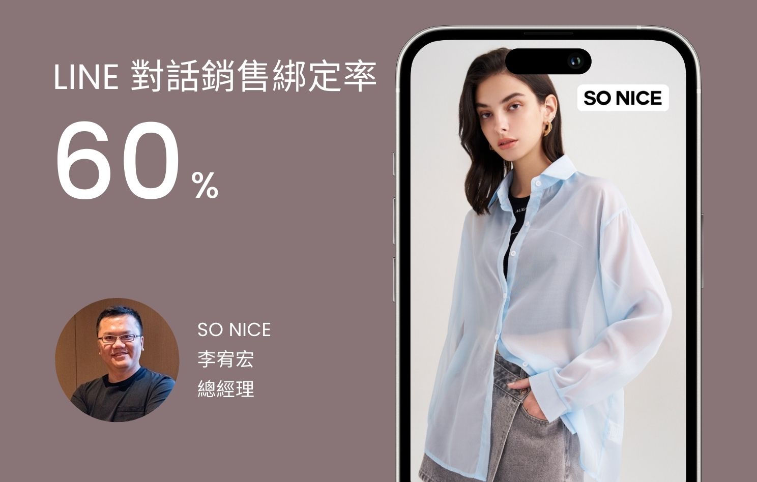 「門市是雙向的,我們的線上的服務也應該是雙向的,所以才開始用 LINE 經營顧客」台灣時尚女裝品牌 SO NICE 總經理李宥宏談起為何會開始推動 LINE OMO 對話銷售。 SO NICE 成立於 1996 年,目前在全台有 54 間門市,為台灣時尚女裝品牌。「李總」李宥宏自 2012 年從父親手中接班,進行了一連串改革、數位轉型,不僅度過國際時尚品牌進軍台灣的挑戰,目前年營收更是超過接班前的