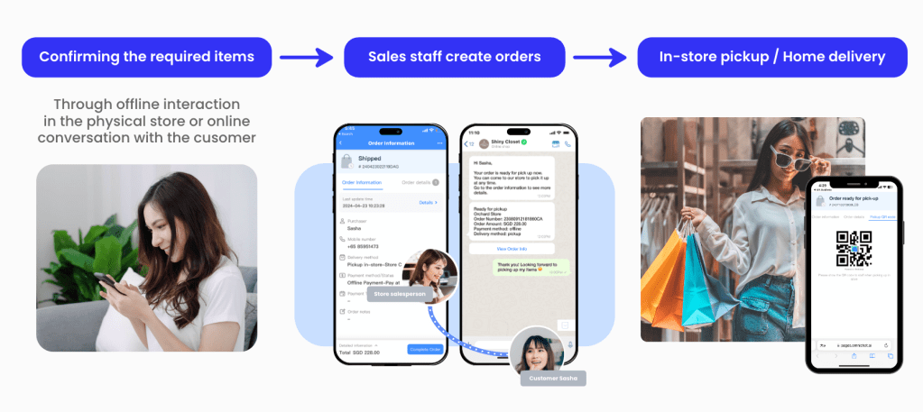 To enhance the experience, customers can chat with sales staff for personalized advice and exclusive discounts. Once the details are finalized and the order is confirmed via WhatsApp, customers simply choose between in-store collection or home delivery.